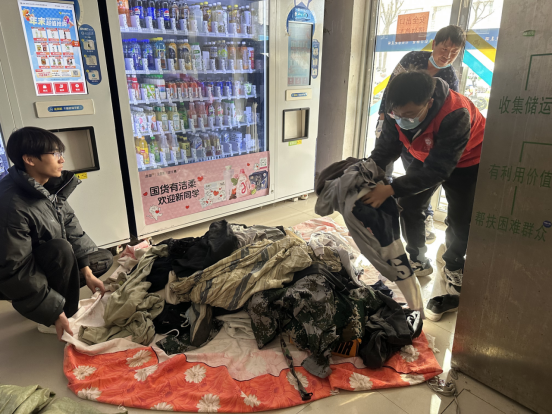近20名志愿者们早早在校博苑广场设置好捐赠点位,来集中回收个人所捐赠的旧衣物。同学们秉持着“这些衣服放在家里也是闲置,能送给需要的人,特别有意义”的信念陆续提着整理好的衣物前来,其中不乏暖和的卫衣、厚实的外套。每一件衣物都经过细心整理,叠放得整齐有序,承载着大家沉甸甸的爱心。另外,志愿者们带领省慈善协会人员将各公寓楼内设置的衣物回收箱中的旧衣物整理回收。
