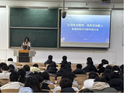 组织召开2024级“弘扬宪法精神、培育法治新人”专题年级大会。会议由辅导员周佳阅主持,同步部署学生宿舍安全管理相关工作。